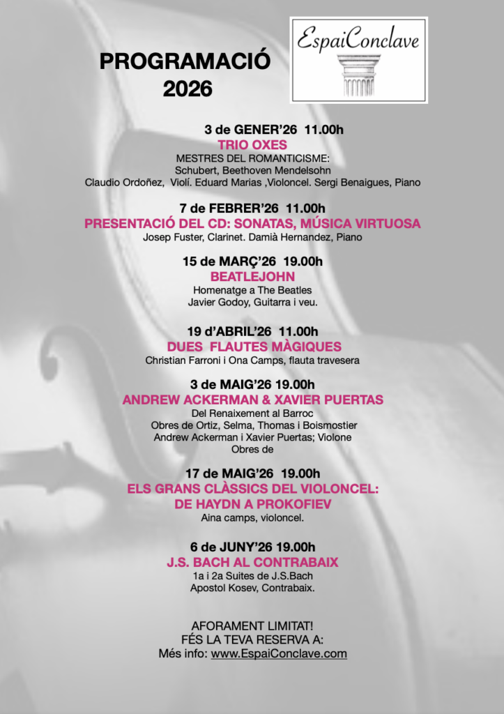 EspaiConclave és un punt de trobada i amistat. Un espai per gaudir de l’art i la cultura i per sentir-se en familia. Les nostres activitats son en petit format amb aforament limitat per poder tenir una millor connexió amb els nostres convidats. Vine a gaudir de la cultura i a practicar la fraternitat!